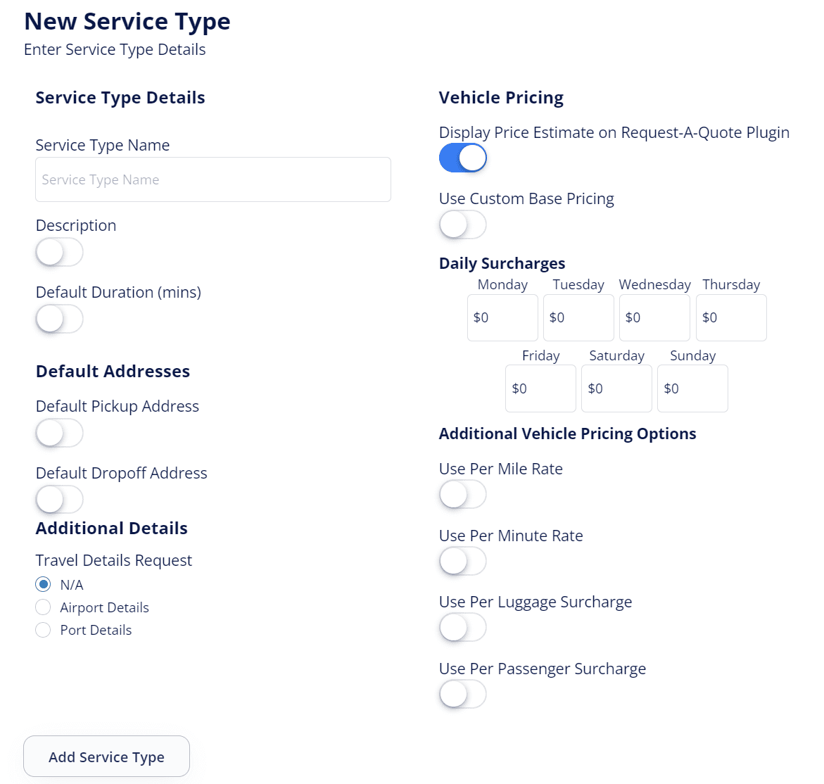 Create custom service types with special rules or create unique tours to offer new ways for customers to see your services.